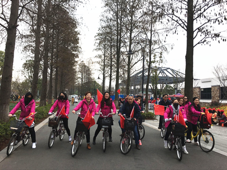 试验检测中心在东湖绿道举行以“骑征美丽东湖,逐梦美丽二航”为主题的骑行活动,在鲜艳的五星红旗指引下,女职工们精神抖擞地骑着自行车,按照规划路线向着目的地湖光序曲行去。下午,全体人员还前往了汉秀剧场,在音乐、舞蹈、杂技等华丽表演的伴随下,度过了充实的一天。(颜欣)