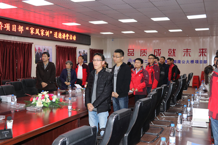 “良好的家风家训,不仅对个人品质有着重要影响,更是与整个社会的和谐发展休戚相关。”活动最后,项目书记进行了总结发言,强调家风不仅是一种规范、一种风气,更是弘扬主流道德和社会主义核心价值观最有效、最简洁的途径,本次道德讲堂活动的目的是提醒、引导大家重视家风建设,希望带给大家的不只是一时的感动,更要将这份收获融入到生活、工作之中。