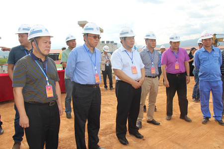 11月7日,云南省人大常委会委员、人大法制委员会副主任委员、人大常委会法制工作委员会主任杨润新到玉磨铁路检查工作。 杨润新现场查看了西双版纳车站建设情况,查阅了相关工程图纸资料。玉磨铁路项目部常务副总工向杨润新一行介绍了西双版纳车站的基本情况,并反映了目前西双版纳车站站场施工存在的问题。 杨润新对中交二航局为云南交通建设做出的贡献表示感谢,对一线工作人员致以崇高的敬意。针对项目部反映的问题,杨润新表示他会和相关部门积极沟通协商,尽快解决问题,保证工程施工得以顺利进行。