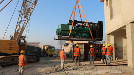 当地时间11月1日,伴随着电动葫芦铁链声最后铮铮一响,巴基斯坦瓜达尔项目6台11KV高压柴油发电机组和1台低压发电机组全部到位。