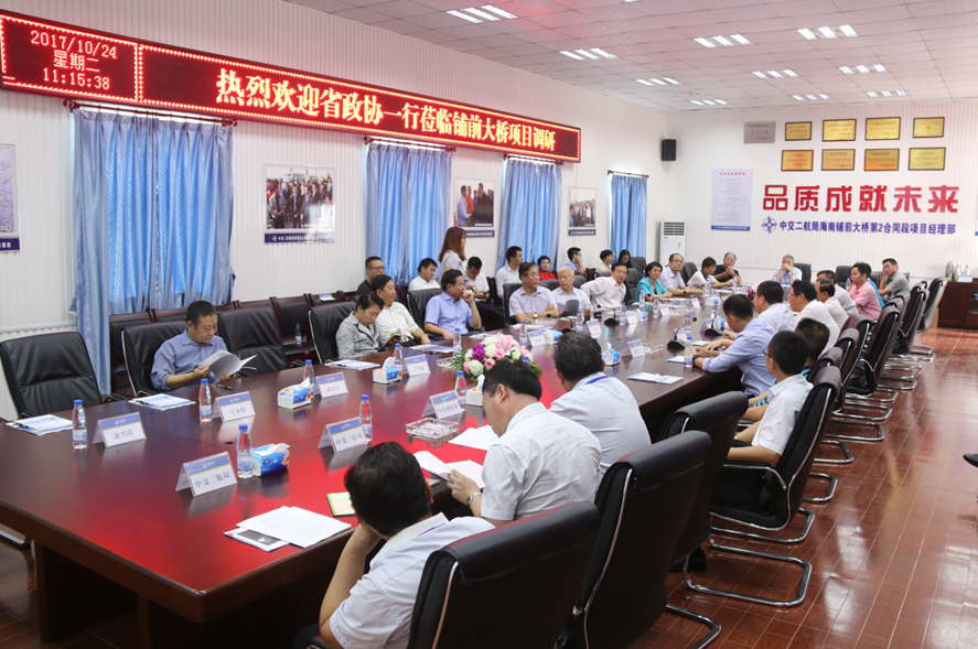 10月24日,海南省政协主席于迅、副主席王勇、秘书长王雄和省政协工作组成员等一行在省交通厅厅长林东、文昌市委书记刘登山陪同下到铺前大桥项目调研。