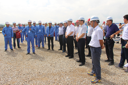 10月22日,中国铁路总公司党组成员、副总经理王同军,中国铁路总公司工程管理中心主任李志义,昆明铁路局总经理王耕捷到玉磨铁路17标检查指导工作,公司总经理由瑞凯、副总经理杨志刚陪同。