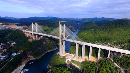 9月30日,遵贵扩容工程楠木渡乌江特大桥成功合龙,为实现年底通车目标奠定了坚实基础。该桥为乌江上最宽大桥,建成后将缓解西南主动脉——兰海高速公路贵遵线的交通压力。