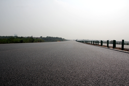 为保证路面工程质量,项目建设者从沥青拌合站建设标准化开始做起,从源头上严格管控原材料质量,施工过程做到流程化、规范化、标准化,多措并举保证了沥青施工质量。此外,在跨江主桥施工中,还采用了契合其宽幅重载交通设计要求的浇筑式沥青进行施工,以保证桥梁使用寿命。