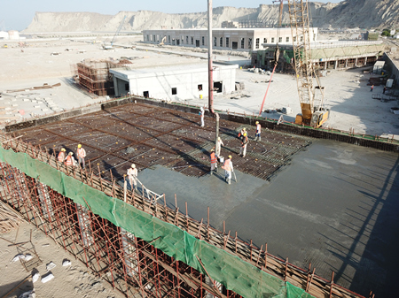 当地时间9月13日晚,瓜达尔自由区起步区项目海水淡化站顶板混凝土浇筑完成,标志着该建筑单体主体框架结构施工全部完成,同时也预示着自由区开园时用上自产洁净淡水的目标指日可待。