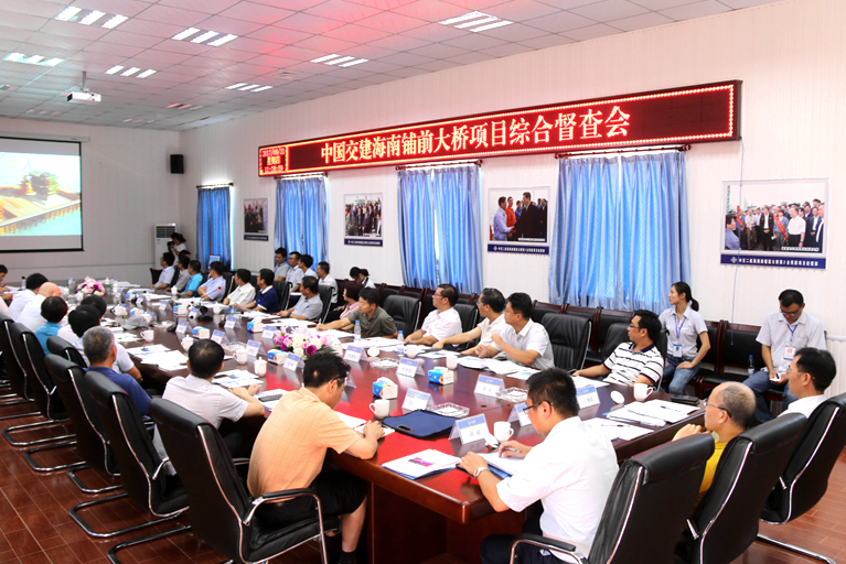 随后,在项目部召开了中国交建海南铺前大桥项目综合督查会,中咨集团、中交一公局、中交二航局先后汇报了项目质量、安全、文明施工情况。会上,王建副总裁指出,铺前大桥作为海南省重点工程项目,建成后必将成为海南省又一标志性建筑,影响重大。项目能够挑战跨越活动断层和台风频发等特殊施工环境,攻坚克难,在确保安全质量环保要求的前提下按时并超额完成节点施工任务,得到上级领导地肯定和奖励,展现了中国交建优秀地施工能力和管理能力,为区域品牌地创建和维护做出了贡献。