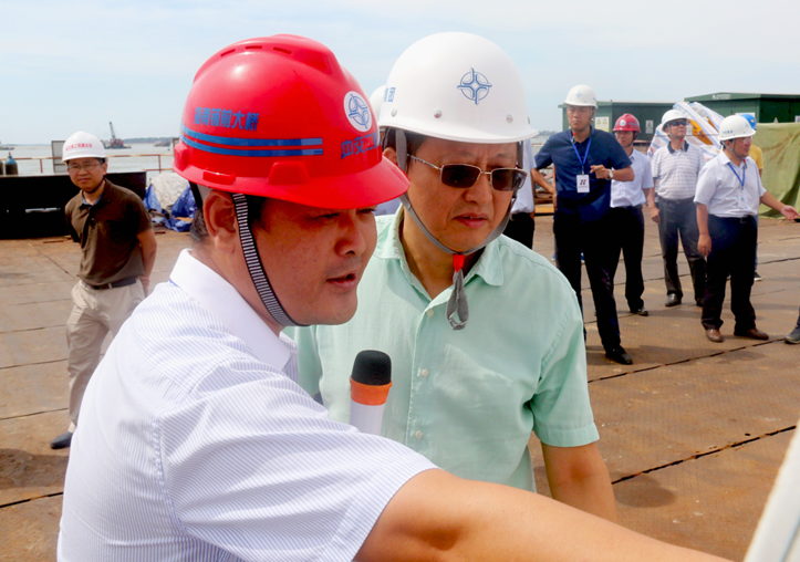 8月15日,海南省审计厅厅长张震华和审计厅工作组成员等一行到铺前大桥项目调研,省交通厅副厅长刘保锋、省交建局局长吕晓宇、中咨指挥部指挥长吴敬武、项目管理人员陪同调研。