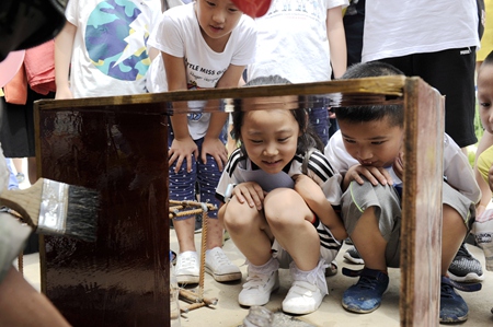 在志愿者的带领下,孩子们首先来到了项目部中心试验室,讲解员叔叔刘超用生动有趣的语言为大家展示了混凝土的诞生,他给孩子们用了一个很形象的比喻:中心试验室在工地就象一家“医院”,所有用在大桥上的材料都必须在这家“医院”里体检合格了才能拿去建设大桥。参观完“工地医院”的各种仪器,孩子们在工人师傅的带领下学着做混凝土试块,这是他们第一次感受到混凝土的魅力,充满了好奇,连声说:“好玩,有趣”。