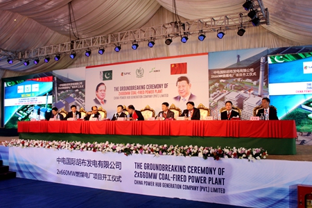 中国驻卡拉奇领事馆总领事王愚在开工仪式上致辞,他表示胡布项目是“中巴经济走廊”的优先实施项目,是中巴政府、中巴企业多方合作的重要成果之一,中国政府愿为项目的建设提供最大帮助,以实际行动促进中巴友谊长青。