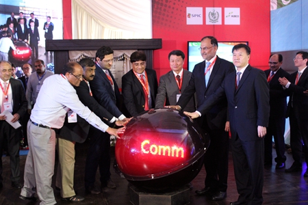 随后,出席会议的领导嘉宾共同触碰水晶球,标志着胡布燃煤电厂项目正式开工。