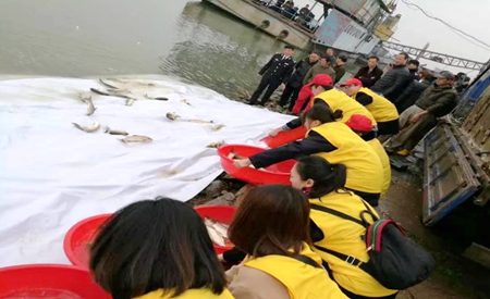 3月17日下午3时30分,潜江市潜阳路项目团支部组织全体团员及青年职工代表,以青年志愿者身份参加了由潜江市水产局主办、潜江市渔政局承办的2017年汉江潜江段鱼类增殖放流活动。