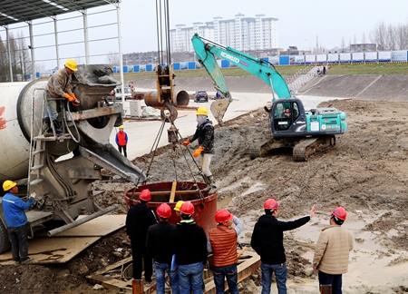首根桩基钻孔于当天完成,并立即进行了成孔质量检测,孔径、孔深及垂直度等各项指标均符合设计标准。次日,历经6小时完成首次桩基砼灌注。