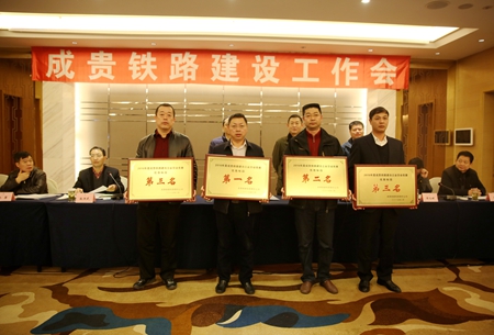 近日,2017年成贵铁路建设工作会在乐山市犍为召开,公司总经理由瑞凯出席会议。会上,二航局成贵铁路项目斩获成贵铁路年度建功立业优胜标段第三名,项目书记黄峰获优秀管理者称号,副经理郭万中、副总工孙晓强获先进标兵称号。