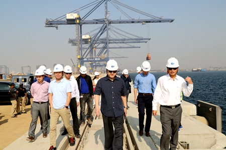 王愚一行深入施工现场,实地查看了巴基斯坦深水港项目各工区施工进度和现场安全文明施工情况,详细了解了项目进展。