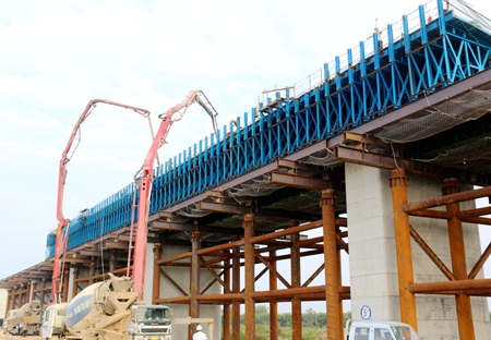 10月15日4时,经过深茂铁路项目阳江车站特大桥施工人员近12个小时的连续奋战,大桥首榀箱梁成功浇筑,打响了明年3月拉通正线的攻坚战。