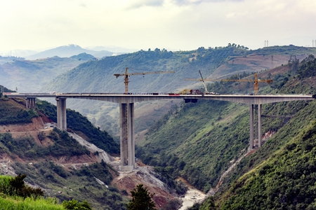 继9月13日盘龙三号大桥左幅合龙后,昨晚从蒙文砚高速现场再次传来喜讯,盘龙三号大桥右幅合龙段历经5个多小时的浇筑,于10 月14日浇筑完毕。至此,盘龙三号大桥主体建设基本完成,为实现年内蒙文砚高速公路先通段建成通车打下了坚实的基础。