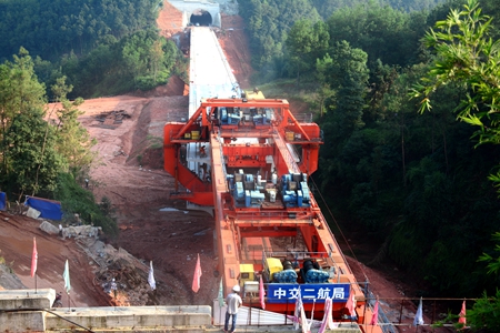 荣誉的背后凝聚着全体员工的汗水与智慧。山区铁路多短路基、隧道,工序转换频繁,为保证安全,项目部制定并实施严格工序卡控管理制度;两座制梁场均与外部单位交叉施工,为提高工作效率,项目多方协调,创造和谐施工环境;按照施工设计,宜宾制梁场架桥机因超高、超宽,无法通过架梁线路内6座隧道。项目对隧道的衬砌断面、仰拱标高尺寸、隧道进出口坡度逐一测量、核实,对隧道内障碍物进行排查,最终确定将隧道预留30cm仰拱不浇筑、隧道内仰拱与桥台顺接坡度、坡度不大于15‰,并对架桥机进行改造,多措并举下