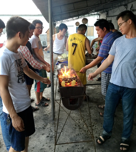 9月12日,在宰杀牛羊分送给巴铁兄弟后,项目青年员工自己动手DIY,一个临时起意的烧烤小party让大家尽情享受了“某氏专业烤串三十年”的乐趣;9月13日-14日,五支队伍组成的“庆古尔邦节迎中秋暨第二届‘行健杯’三人篮球赛”拉开帷幕,两个下午的角逐,激发了各工区、部室团队之间更强的争抢精神;而9月15日,大伙则在加餐、吃月饼之后,齐聚KTV,载歌载舞、游戏娱乐,享受那惊喜的小红包带来的快乐。