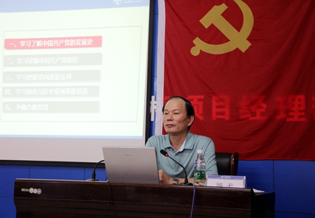 会后,游弋为项目部党员及入党积极分子上了题为《树高尚品质不忘初心 当合格党员继续前进》的党课,系统介绍了党史、党章党规、习近平系列重要讲话以及争做合格党员等学习要点,并结合公司和分公司党建工作方法进行了解读,让项目部党员受益匪浅。