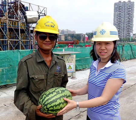 另外,会议前,刘曼代表分公司工会,亲自将绿豆、白糖、西瓜等防暑降温物品送到一线工人与项目职工手中,并叮嘱项目管理者一定要落实各项高温劳动保护规定,切实维护一线参建者的健康权益。