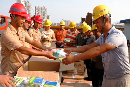 8月1日,湖南省总工会经审会主任郭建中、益阳市总工会党组书记、常务副主席郭谷轩一行顶着烈日,为分公司益阳大桥项目部全体员工送来清凉慰问品。