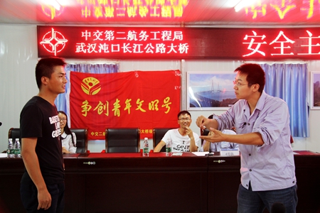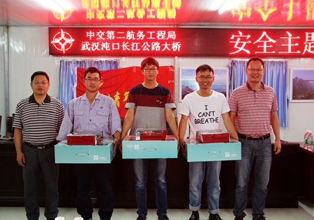 2016年6月为全国第15个安全生产月,围绕着本次安全月主题“强化安全发展观念,提升全民安全素质”,6月29日下午,沌口大桥团总支举办了“安全主题趣味竞赛”活动。当天,活动采取分组对抗的形式,每组三人,南岸、北岸、南接线和总部四支队伍各自为战,现场气氛轻松活泼。