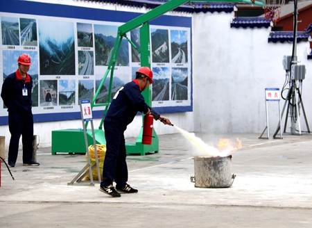 仪式后,项目部为进一步提高项目部全体员工的消防安全意识和突发处置能力,还开展了消防技能竞赛,在比赛中,全体参赛队员顽强拼搏,分秒必争,倾尽全力展现练兵成果,整个比赛角逐激烈,紧张有序,高潮迭起,精彩不断,所有参赛者都展现出了二航人业务技能精、精神面貌好的优良作风。通过此次竞赛,有效提高了员工消防技能的实际操作和处置能力。