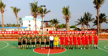 五四青年节来临之际,在海南铺前大桥项目部新建篮球场举行了一场主题为“引爆篮球魅力 共建警企情谊”的篮球友谊赛。