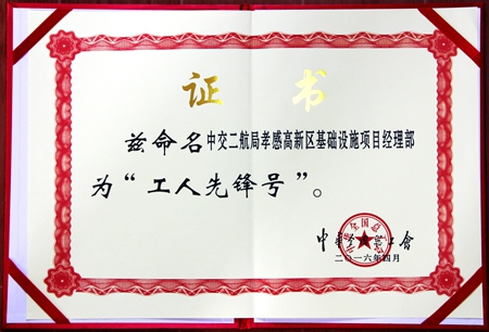 日前,从湖北省总工会获悉,经孝感市总工会推荐、湖北省总工会审核公示、全国总工会批准表彰,孝感项目被授予2016年度“全国工人先锋号” 荣誉称号,这是继2014年获得“湖北省工人先锋号”后,获得的最高嘉奖。