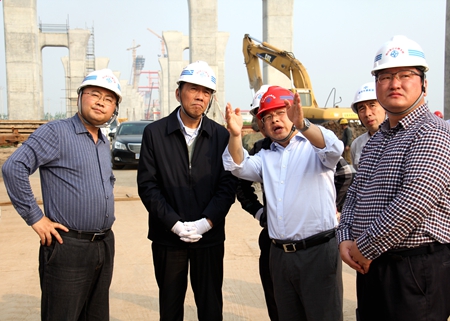 4月13日下午,原交通运输部总工程师周海涛、湖北省交通运输厅总工程师姜友生一行到沌口大桥调研,公司党委副书记、纪委书记、工会主席肖继生陪同。调研团在沌口大桥项目北岸主墩和引桥了解了重要施工工艺,并在江边会议室与设计单位、项目公司、监理和项目部主要负责人共同探讨了该项目施工过程中的科技创新。