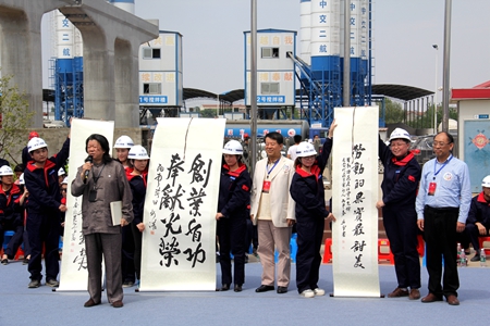 当天,姜昆带领由10人组成的中国文联“最美志愿者”团队,到武汉沌口长江大桥项目慰问建设者,并借此契机向全国劳动者致敬。一个半小时的表演,艺术家们与武汉沌口大桥项目近300名一线建设者共同联欢。