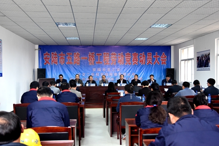 4月8日,由安陆市总工会、中交二航局安陆投资有限公司、中交二航局安陆基础设施工程项目部联合主办的“安陆市五路一桥劳动竞赛动员大会”在安陆项目部隆重举行。孝感市总工会副主席汪斌、中共安陆市委常委、工会主席黄文辉、公司工会副主席许世勇、公司投资事业部党委书记周滨、分公司纪委书记、工会主席姚本思、工会副主席郑华等领导出席大会,大会由安陆市总工会副主席汪新平主持。