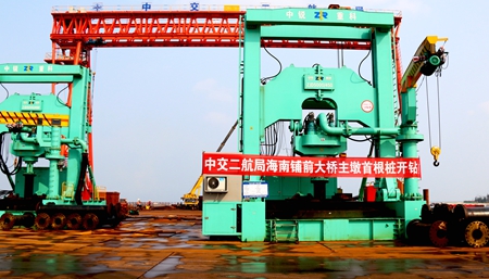 “我宣布,海南铺前大桥34#主墩正式开钻!”3月26日上午,伴随着施工机械运作声,项目经理宣布铺前大桥首根大直径桩基开始钻孔,数小时后,海底的泥浆缓缓流出,标志着连接海口和文昌的铺前大桥主体工程正式施工,大桥建设进入新阶段。