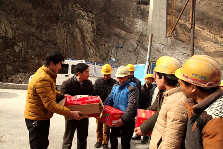 2月21日,工会主席姚本思前往深茂项目看望慰问节日期间仍然坚守生产一线的协作单位,向他们送去新春慰问品,详细询问他们节日期间的生活、工作安排,对他们的辛勤劳动和付出的汗水表示感谢,并送去节日的祝福和诚挚问候。