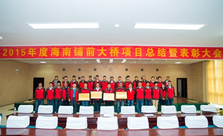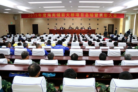 1月22日上午,由中咨集团海南铺前大桥管理指挥部举办的2015年海南铺前大桥项目总结暨表彰大会在海口隆重举行。海南省交通运输厅总工程师刘闯,中国公路工程咨询集团总经理助理、中咨华科公司董事长王晓东,海南省交通厅铺前大桥管理指挥部指挥长张迎春,中咨集团海南铺前大桥项目管理指挥部指挥长吴敬武,海南省交通厅指挥部副指挥长黎建煌等领导出席会议。我项目部获颁2015年度先进集体、2015年度宣传工作先进集体、2015年度工程部先进班组、2015年度测量室先进班组,并有8人被评为先进个人。