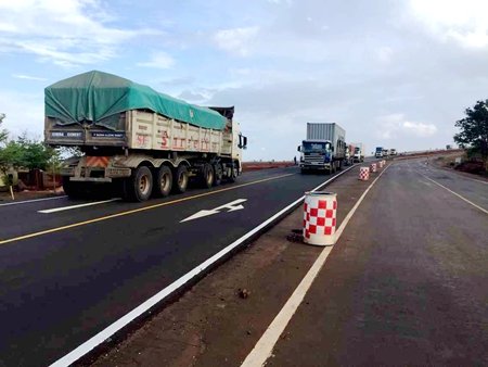 当地时间11月17日上午,肯尼亚蒙内四标首座公路桥DK347+062顺利通过验收。随着滚滚车流顺利通过该桥,蒙内四标首座公路桥正式建成通车。
