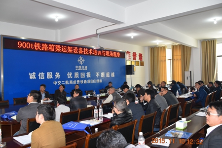 11月10日,中交二航局铁路箱梁运架设备技术培训在成贵项目召开,由公司工程管理部牵头,各子、分公司及设备设计、改造方北京万桥、华中建机的32名设备设计、管理代表对900吨运架一体机、分体式运架设备在山区铁路的改造与运用进行了研讨。