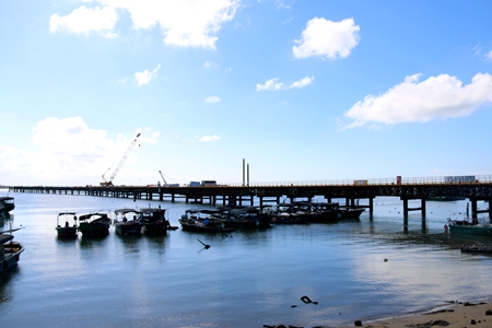 11月8日,随着最后一块钢板焊接牢固,耗时70天的海南铺前大桥钢栈桥圆满完工,标志着铺前大桥主体建设工作即将开始。