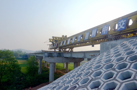 武广高铁下穿小桥是项目标段内最后一座需架设的桥梁,由于架桥作业要在高铁桥正下方进行,安全系数要求较高,因此项目部积极主动同高铁管理部门进行协商,安排了大吨位架桥设备,并选择高铁通行频率较低的夜间时段进行架设,以尽量减少架桥工作对高铁运行的影响。10月21日,该桥架梁工作顺利完成,也标志着整个标段架梁工作的圆满结束。
