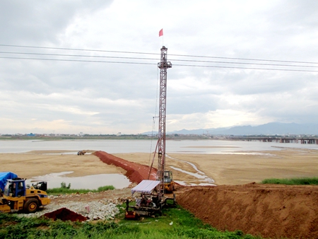 在施工现场,船闸上下游已分别用红土筑起了两道围堰,远看像两条“长龙”。“这两道围堰将整个枢纽工程分成三段,右边是上引航道,左边是下引航道,中间是船闸主体。”现场施工负责人介绍,围堰作为临时性围护结构,其作用是防止水和土进入修筑物的修建位置,以便在围堰内排水,开挖基坑,修筑建筑物,围堰在建筑物建完后便会拆除。