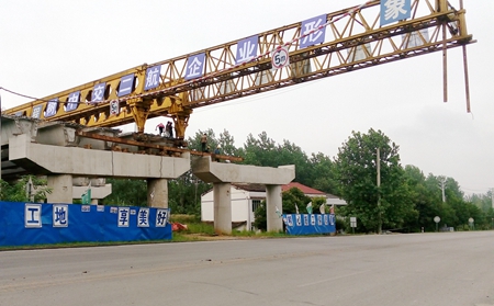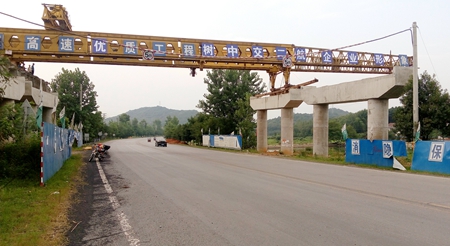 7月14日上午10点,武深高速嘉鱼至通城段TJ-4标开始上跨214省道。随着现场总指挥一声令下:“10分钟内必须让武深高速跨越214省道!”七屋岭大桥跨214省道施工开始,地面10名工作人员在赤壁市交警、路政的协助下,兵分两路,3辆路政、交警车分别从214省道赤壁镇方向、赤壁市区方向,对道路两端进行交通管制。