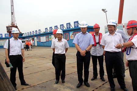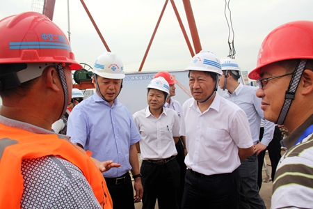 7月7日,中交投资公司总经理何国民、中交二航局总经理王世峰、中交二公院总会周露一行到沌口大桥检查指导工作。