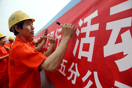 活动结束后,现场一线施工人员和管理人员参加了分公司“万人签名万里行”进基层活动,在“加强安全法治、保障安全生产”标语上签名,让安全生产深入到每一位施工人员心中。