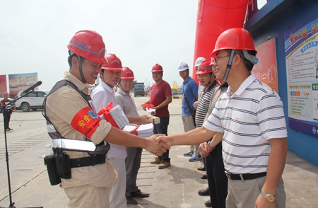 据悉,在仪式举办前一日,沌口大桥项目部与海事联合对水上调度船、浮吊等船只进行了安全大检查,以实际行动表明项目部时刻紧绷安全弦,安全管理不松懈。