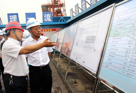 6月4日上午,中国交建总裁助理兼中交投资公司董事长李茂惠一行在公司总经理王世峰、分公司总经理张育林等领导的陪同下,到施工现场检查指导工作。