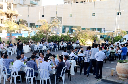 为丰富职工生活,调节项目气氛,“五一”前夕,以色列阿什杜德港项目在临时住所Miami Hotel院内举办了一场盛大的烧烤party,项目部所有中外籍员工均参加了会餐,并邀请了中港办事处等相关单位人员参加。