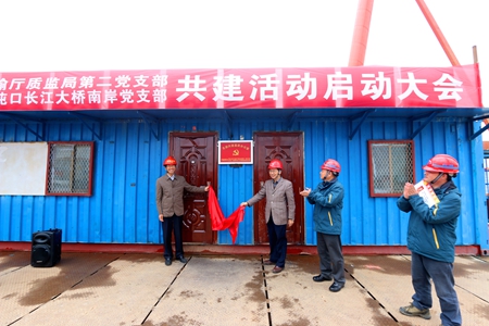 4月20日,湖北省交通运输厅质监局第二党支部与沌口大桥党支部共建活动启动。质监局党委书记胡焰华、项目投资公司党工委书记莫汉清出席启动仪式。质监局第二党支部全体党员,项目投资公司党员代表,沌口大桥南岸党支部全体党员、北岸、南接线、本部党支部党员代表、项目团总支代表及入党积极分子代表近60余人参加了启动大会。