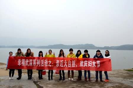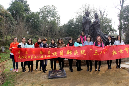 3月8日早上8点,沌口大桥项目部15名女员工及家属在总部门厅留下合影后,开始了一天的亲近自然之旅。