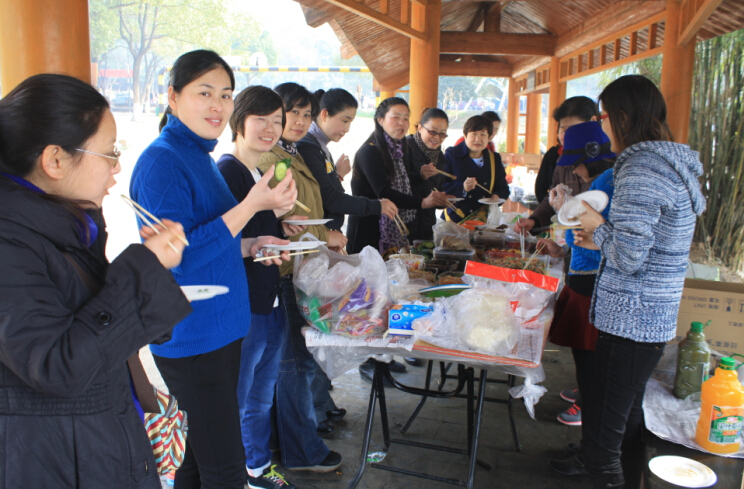 上午9点半顺利到达马鞍山森林公园烧烤点,大家自由游玩后便开始烧烤,展菜肴。看似很好点燃的炉子却让大家费心心思,却听有人说可将对面湖边的芦苇杆做燃料这样才点燃。大家争先恐后的将自己的“佳作”拿出后,便开始一边烧烤、一边品菜肴。餐桌上被摆的满满的:有烤鱼、烤鸡爪、凉拌牛肉、凉拌米粉、干炒虾仁、水果沙拉等。丰富多彩的菜肴让大家大饱眼福、口福。在品菜肴的同时也在品味生活,交流生活、学习生活。酒足饭饱后,便进行猜成语,一人将看到的成语通过身体语言描述,其他人猜,在活动的同时也在检验自己的个人知识面,想象力和与同事之间的默契度。