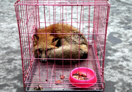 办公室内,大家仔细查看了这个“不速之客”,发现它左腿受伤,无法站立,精神萎靡。看到这个情况,拌合站的工作人员纷纷行动起来,有的拿来牛奶,有的拿来苹果,有的跑到工区食堂拿来肉和火腿,实验室的小姑娘还将她的宠物笼贡献出来,为小狐狸安置了一个简单而温馨的“住所”。当看到“小狐狸”慢慢地喝了些牛奶,吃了点火腿,大家悬着的心才放下。